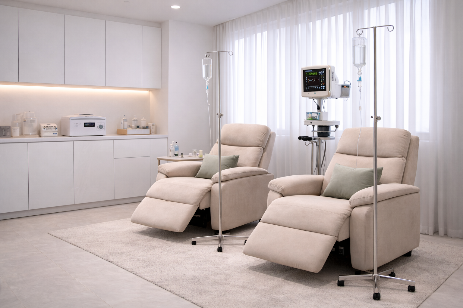 При первом визите врач проведет осмотр, изучит анамнез и при необходимости назначит анализы. После получения результатов сформирует протокол и назначит дату инфузии. При вашем желании доктор приедет с капельницей на дом, проведет процедуру в комфортных условиях и спокойной обстановке.